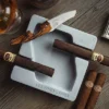 The design of the MONAD and DYAD ashtray line is a search for balance and simplicity. It is an ode to the spirit of the cigar: the unity achieved between the individual and the product. Aligning soul and matter, inspired by philosophy and architecture. On one hand, ancient metaphysics gives its name to the product. On the other, the Japanese Wabi Sabi aesthetics marries the humility of the chosen material.
